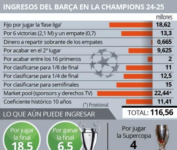 巴萨的欧冠之旅不仅获利了荣誉,更是一笔丰厚的奖金。