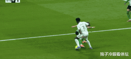 姆巴佩不在,维尼修斯愈加积极主动要球,第7分钟,维尼修斯突入禁区被疑似追尾倒地,裁判暗示莫得点球。