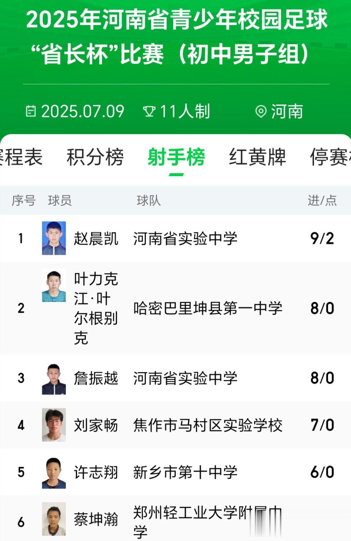 在7月份的2025年中青赛河南赛区男人U15组比赛中,赵晨凯成为最好弓手,他打入5球。