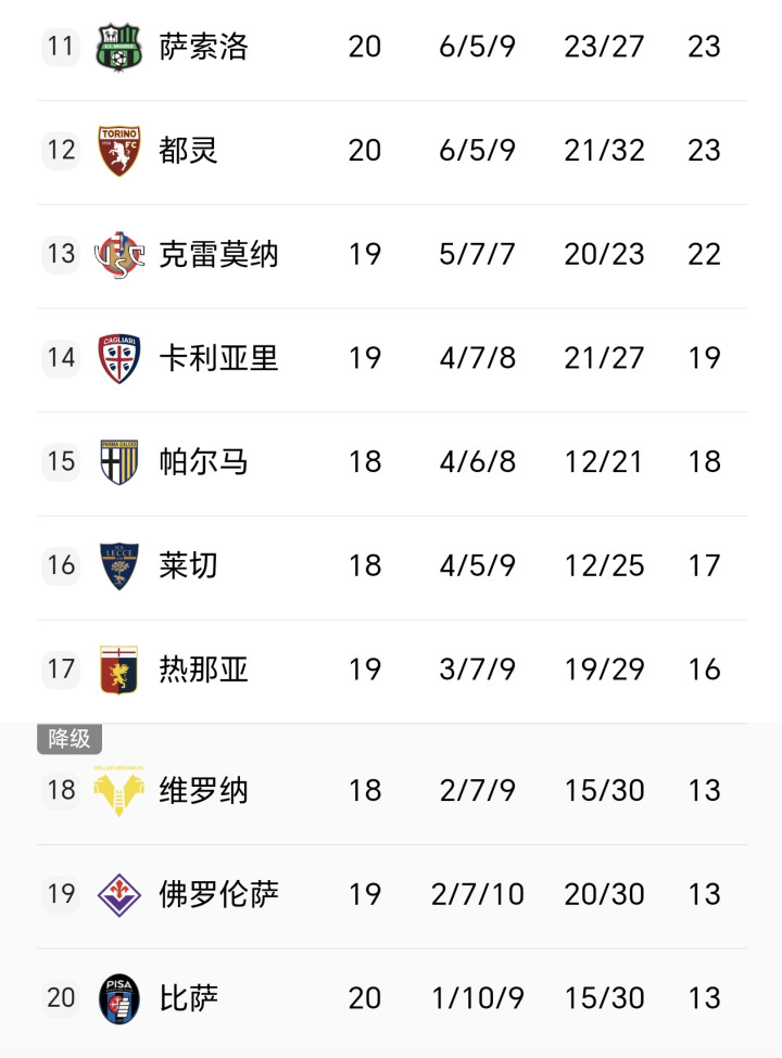 乌迪内斯7胜4平8负排行第10,球队上轮2-1力克齐灵,完结此前1平2负的不堪弱势。升班马比萨1胜9平9负排行倒数第一,恐将再度左迁。