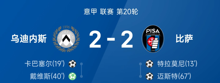 乌迪内斯2-2比萨