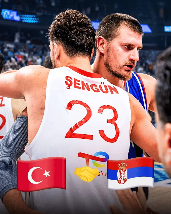 这张相片捕捉到的俄顷背后,是两位天才中锋在欧锦赛赛场上的一场精彩对决。在昨日土耳其与塞尔维亚的比赛中,申京砍下28分13篮板8助攻的准三双数据,而约基奇则赢得22分9篮板4助攻,两位球员的精彩显露让这场比赛成为本届欧锦赛的经典之战。