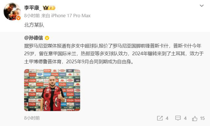近日,据多家外媒以及国内媒体东说念主透露,罗马尼亚国脚时尚普斯卡什将在这个冬窗登陆中超,而媒体东说念主李平康发文示意,但愿引进这位前国米旧将的中超球队来自朔方某队……