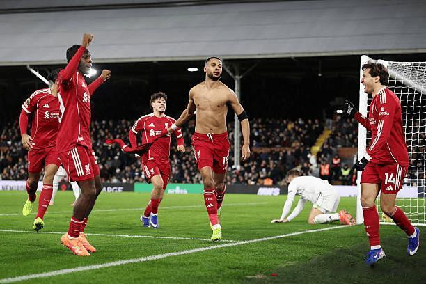伤停补时阶段,利物浦大举压上,范戴克皆冲到禁区准备抢点,第94分钟,弗林蓬右路起球激励乱战,加克波后点撞射破门,2-1,进球的加克波非常昂扬,选拔脱衣庆祝,为此他也吃到了一张黄牌!斯洛特很快用戈麦斯替下加克波,试图保住这贬抑庄重的三分!