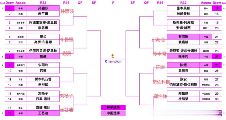 WTT冠军赛女单签表如下